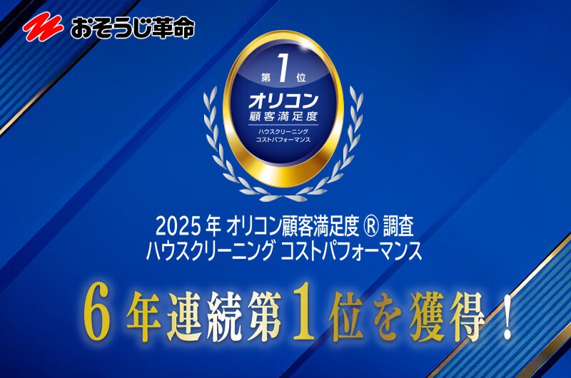 おそうじ革命は全国に400店舗以上を展開しており、ハウスクリーニング業界の中でも比較的規模の大きいブランドです。また、オリコン顧客満足度調査においてコストパフォーマンス部門で6年連続No.1を獲得するなど、第三者評価による実績も積み重ねています。