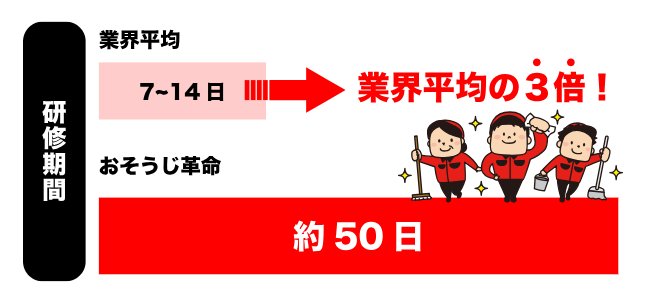 おそうじ革命の大きな特徴のひとつが、約50日間という業界でも比較的長期の研修制度です。